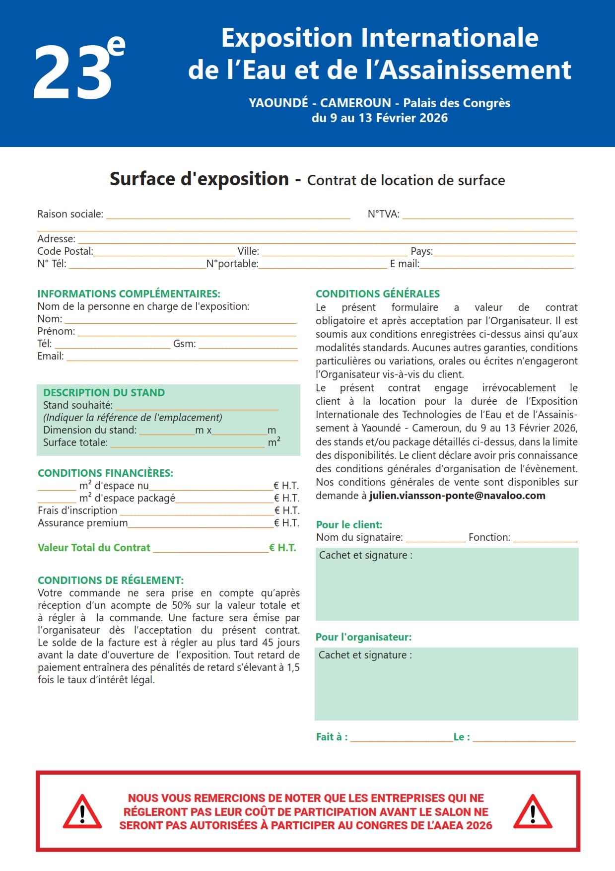 - Stand complet : 350 €/m²